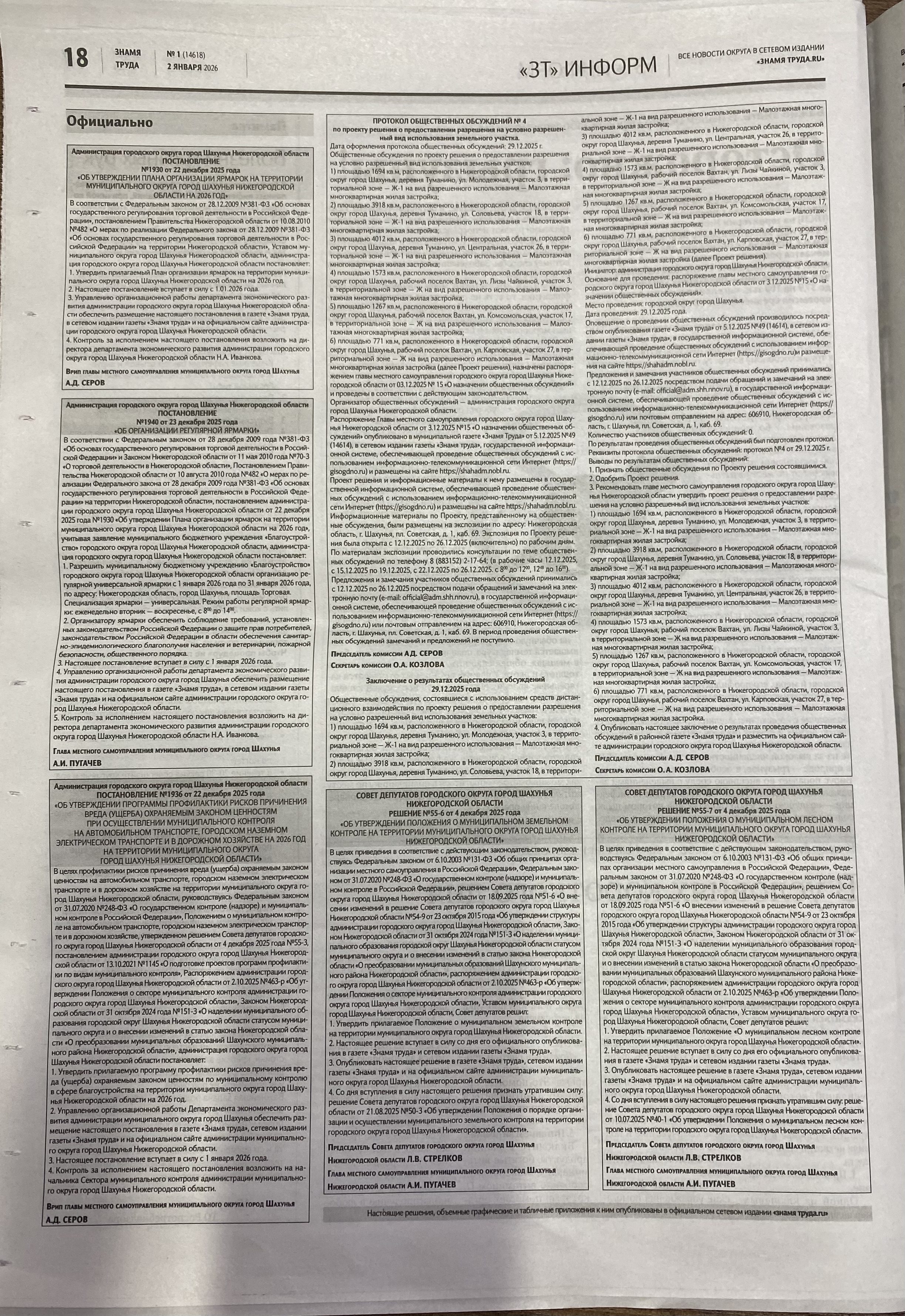 муниципального округа город Шахунья А.И. Пугачёв